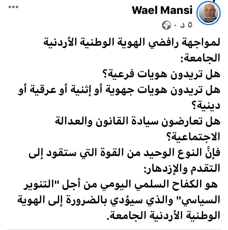 لمواجهة رافضي الهوية الوطنية الأردنية الجامعة: