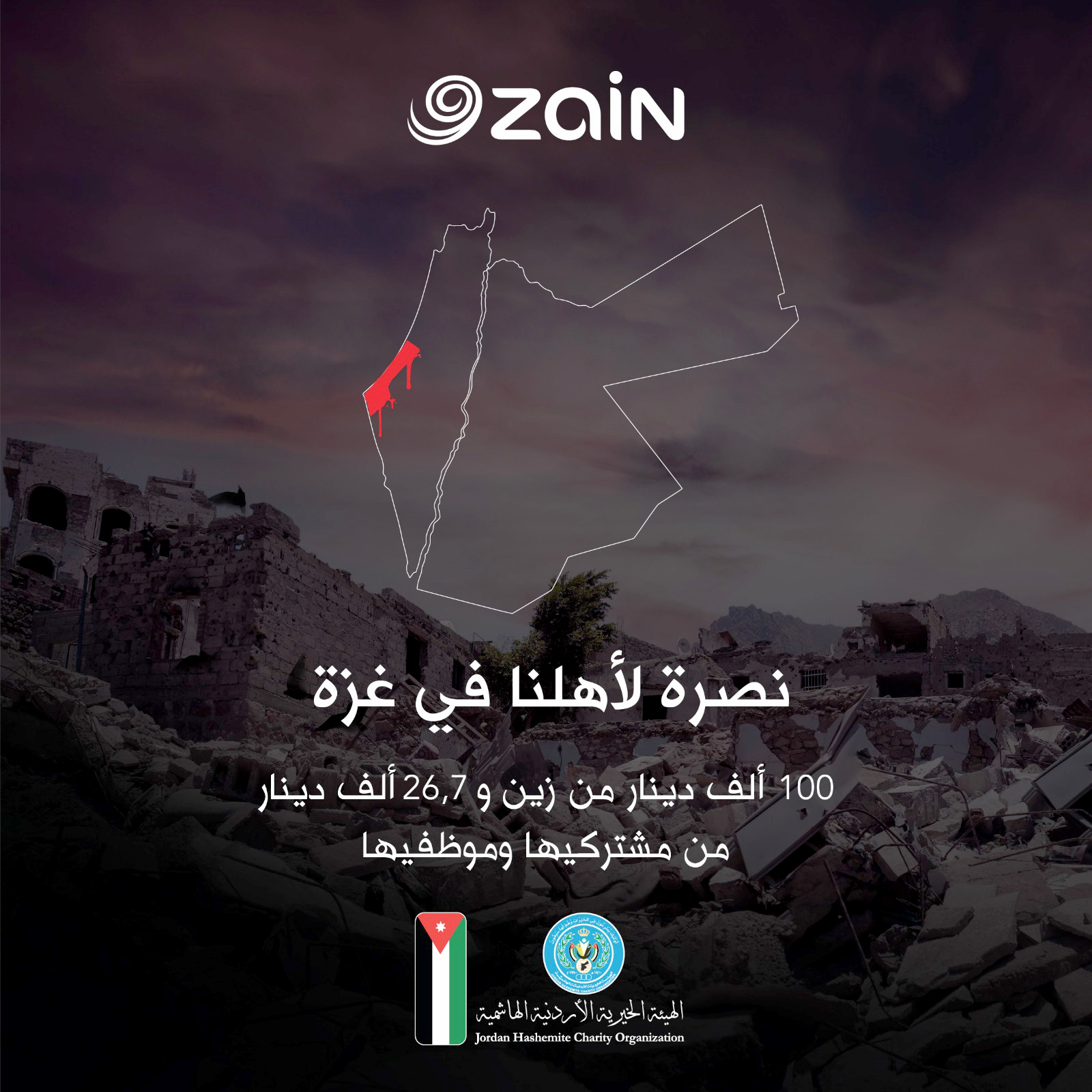 زين تقدم 100 ألف دينار دعما للأشقاء في غزة