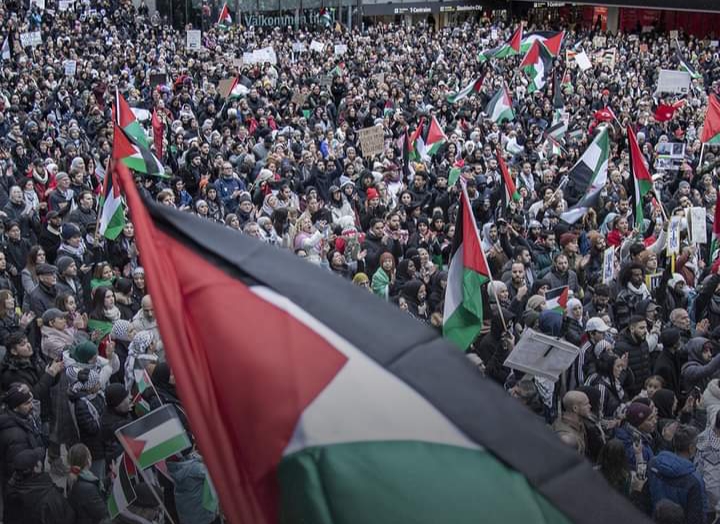 مسيرة حاشدة في شوارع #السويد دعما لـ #غزة ومطالبة بوقف القصف المستمر على القطاع
