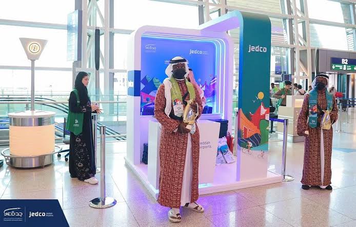 بالقهوة والحلوى الشعبية.. "مطارات جدة" تحتفل باليوم الوطني مع المسافرين