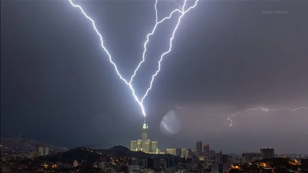 أضاءت سماء مكة المكرمة.. صواعق رعدية تضرب برج الساعة |شاهد