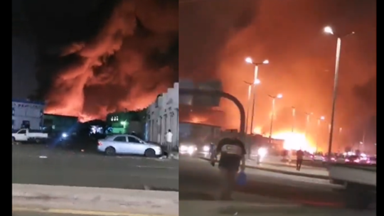 السعودية ..اندلاع حريق ضخم في سوق الصواريخ بمدينة جدة