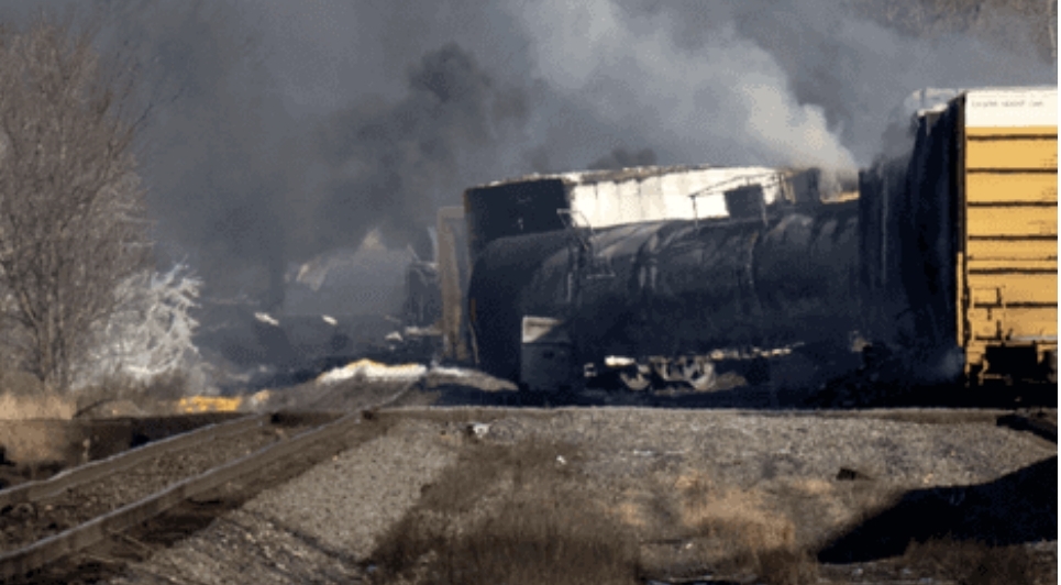 حريق هائل في ولاية أوهايو إثر خروج قطار عن مساره