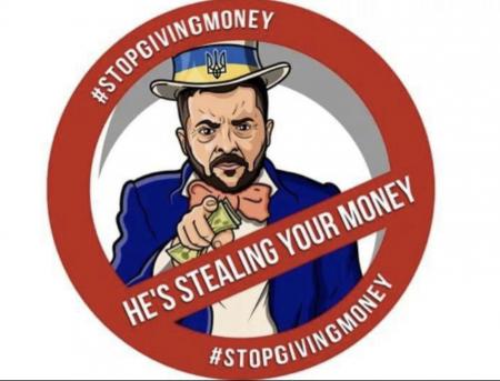 ملصق ضد الرئيس الاوكراني في امريكا :"انه يسرق اموالك"