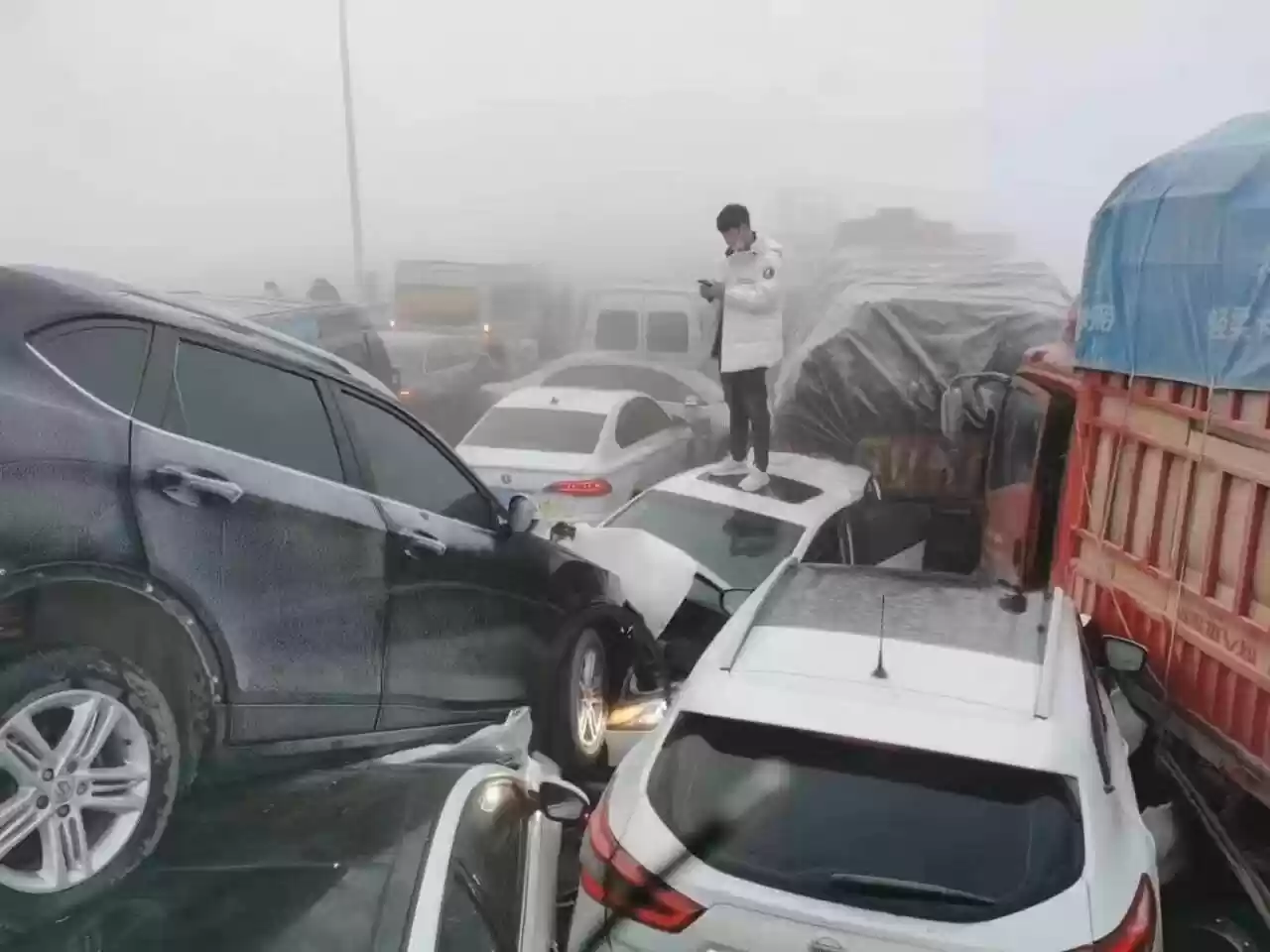 حادث تصادم بين 200 سيارة بسبب الضباب (صور)