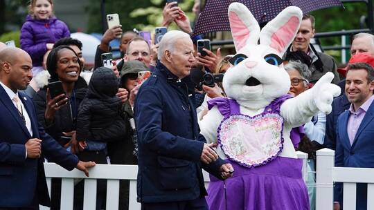 "أرنب" عيد الفصح يحرج بايدن ويمنعه من الإجابة عن سؤال مراسلة أفغانية مشهورة! (فيديو)