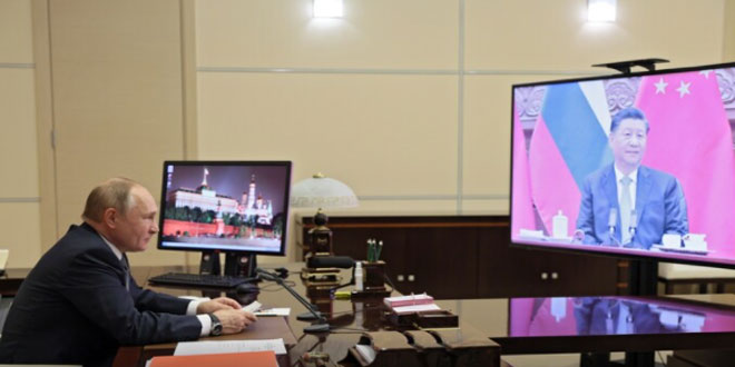 بوتين وجين بينغ يبحثان في اجتماع عبر الفيديو العلاقات الثنائية وملفات دولية