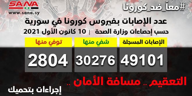 سورية:93 إصابة جديدة بكورونا وشفاء 96 حالة ووفاة