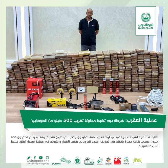 شرطة دبي تعلن ضبط نصف طن من الكوكايين بقيمة تزيد عن 130 مليون دولار