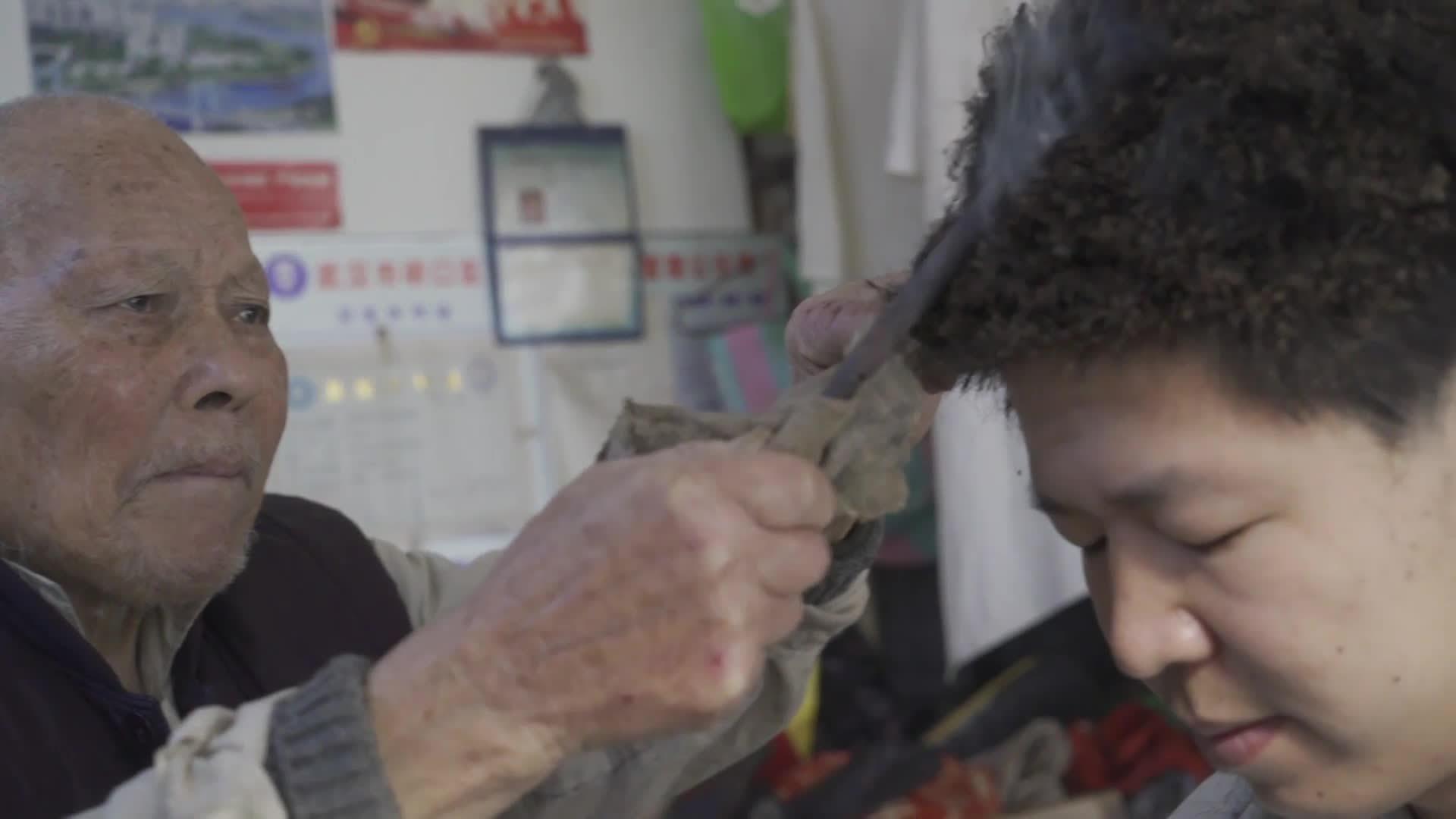 حلاق صيني يبلغ من العمر 91 عاماً يقص الشعر عن طريق الحرق... فيديو