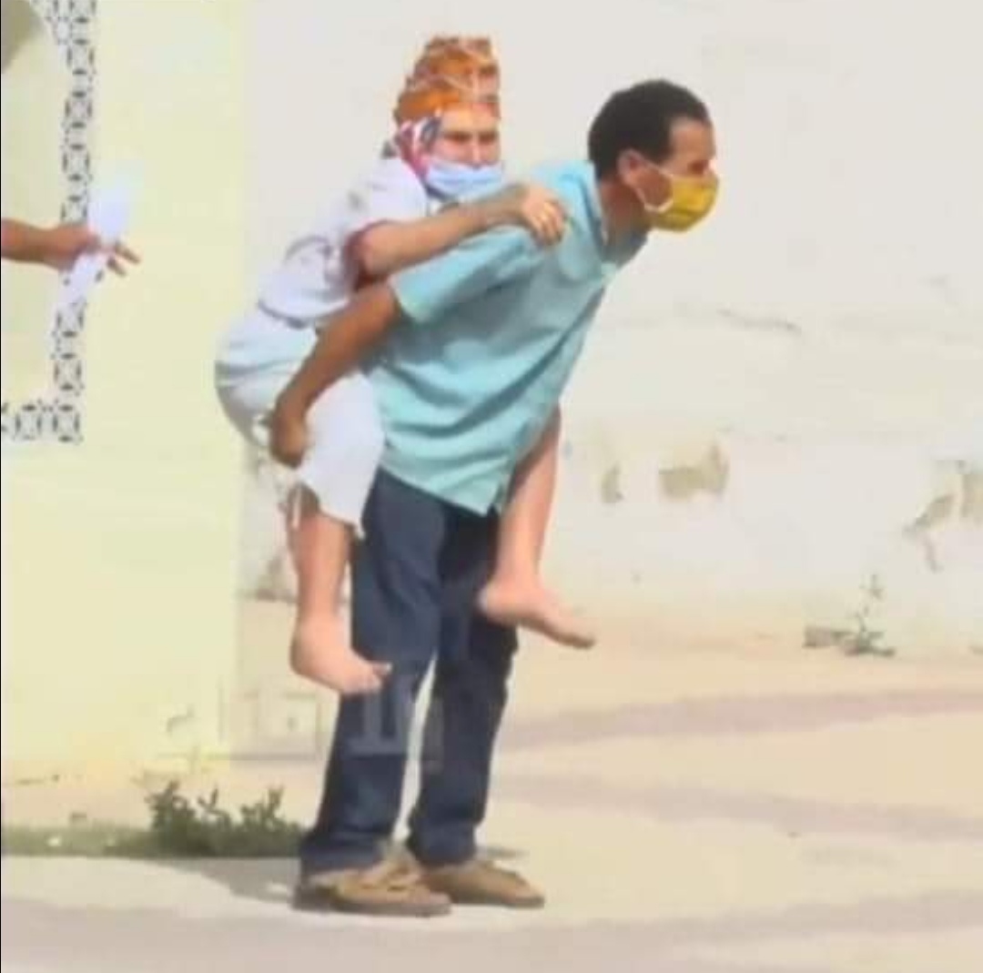 فيديو مؤثر لتونسي يحمل والدته العجوز على ظهره متوجهاً للمستشفى.. مصابة بكورونا وكان يحاول إنقاذها