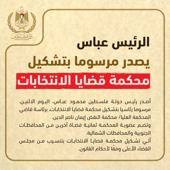 الرئيس عباس يصدر مرسوما بتشكيل محكمة قضايا الانتخابات