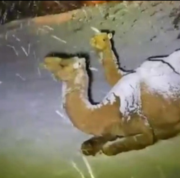 مشاهد لا تصدق من السعودية.. ثلوج على ظهور الجمال... فيديو