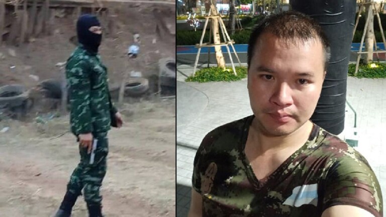 منفذ هجوم تايلاند يستهدف مركزا تجاريا بقاذفة قنابل ويلتقط صورة له على خلفية الانفجار.