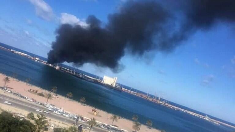 عاجل :- شاهد استهداف الجيش الليبي لسفينة تركية محملة بالأسلحة .