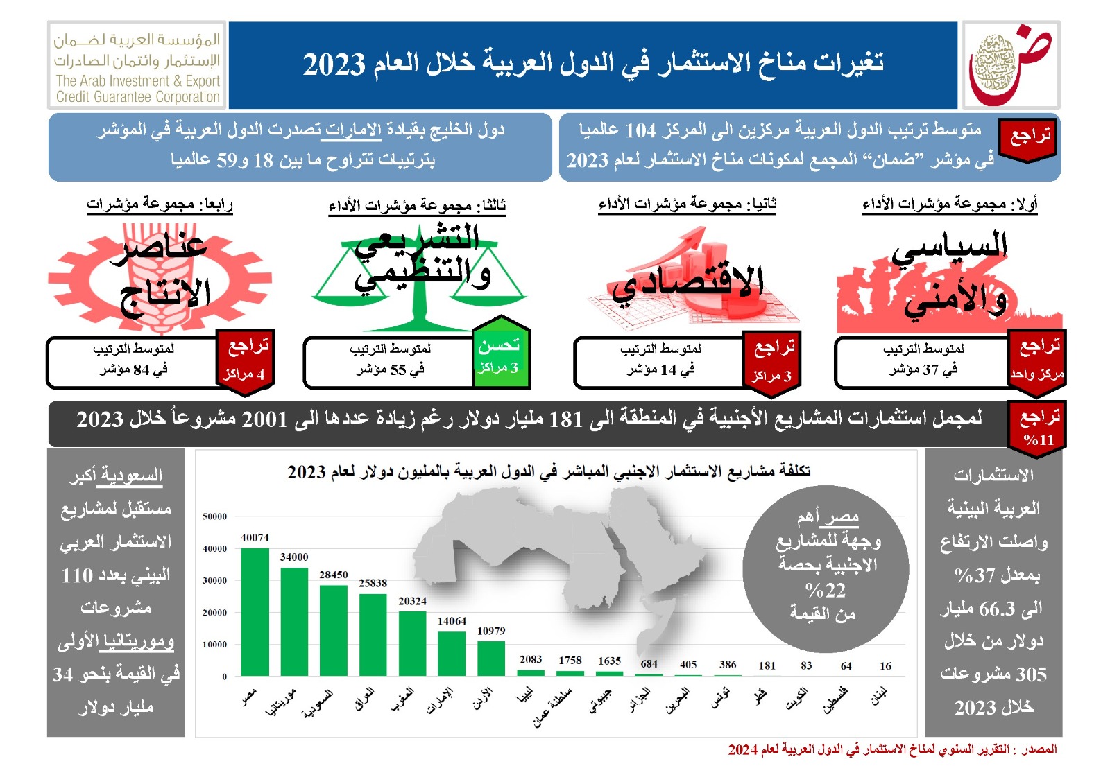 تراجع متوسط ترتيب الدول العربية بمؤشر ضمان الاستثمار