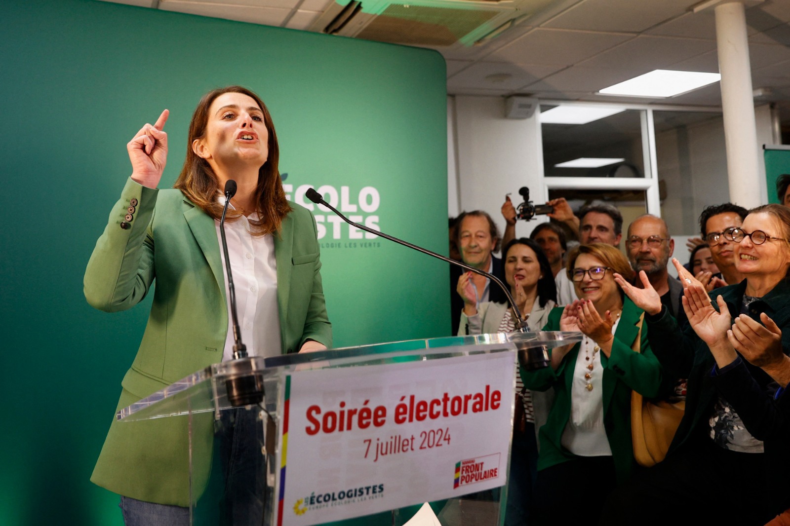 ملابسها بلون حزبها……. زعيمة الخُضر الفرنسي مارين تونديلييه بحضورها الجريء تخطف الأنظار