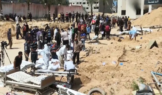 العثور على 3 مقابر جماعية بمجمع ناصر الطبي في غزة