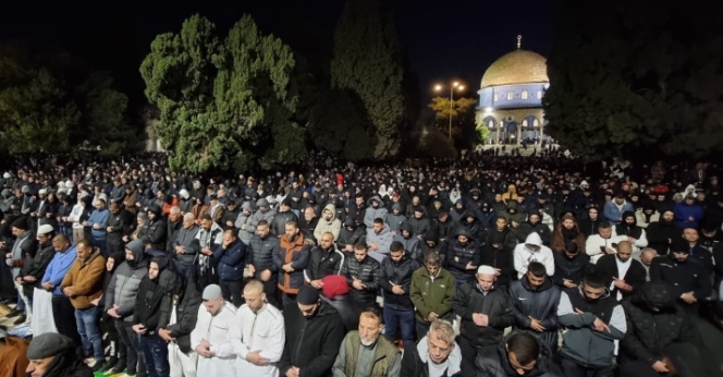 100 ألف مصل يؤدون صلاتي العشاء والتراويح في رحاب المسجد الأقصى