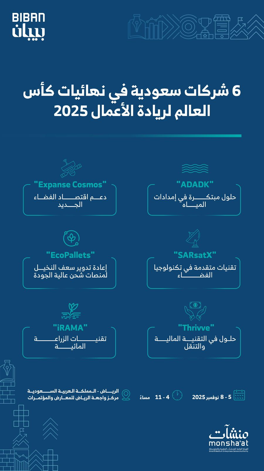 6 شركات سعودية تتأهل لنهائيات مسابقة كأس العالم لريادة الأعمال في ملتقى “بيبان 2025”