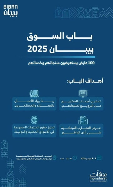 100 عارض محلي ودولي يستعرضون خدماتهم ومنتجاتهم في "بيبان 2025" عبر "باب السوق"