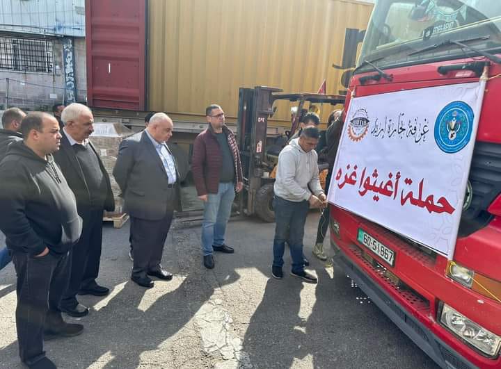 تجارة إربد ترسل الشحنة الرابعة ضمن حملة "أغيثوا غزة