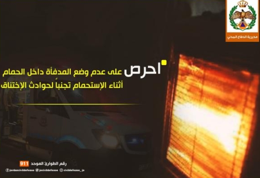 الدفاع المدني: لا تضعوا المدفأة داخل الحمام