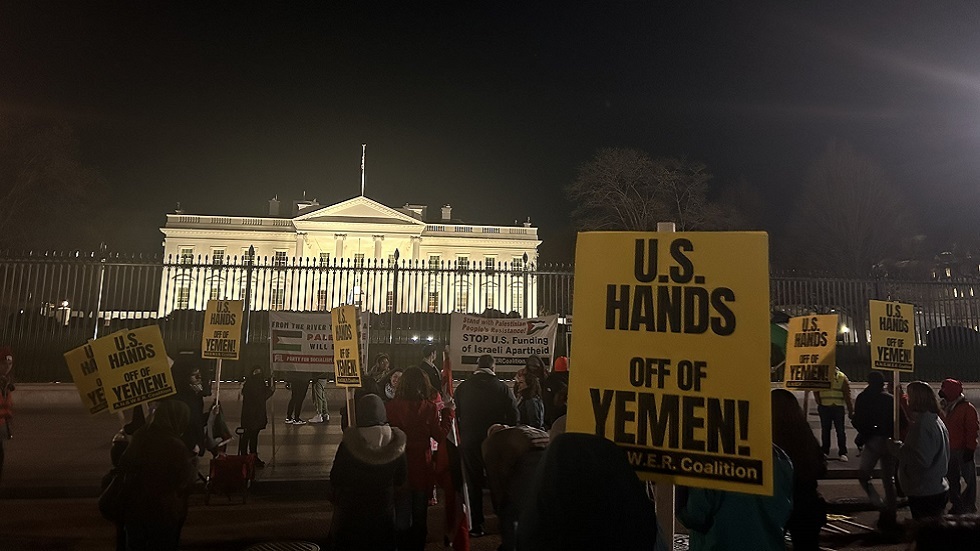 تظاهرات أمام البيت الأبيض احتجاجاً على القصف الأميركي على اليمن