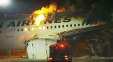 اندلاع النيران في طائرة على مدرج المطار في اليابان