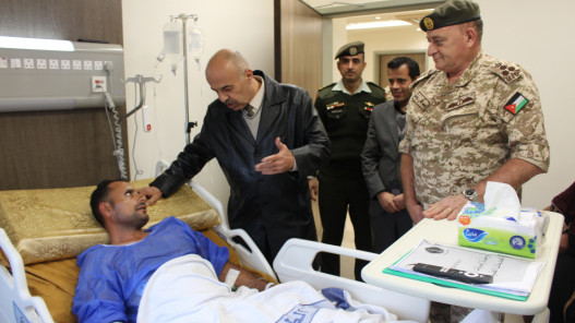 مدير الهيئة الهاشمية للمصابين العسكريين يعود المصاب في اشتباك مع مهربين