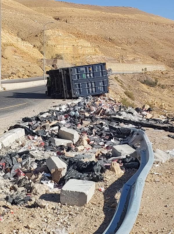 انقلاب شاحنة على طريق النقب اتجاه مدينة العقبة