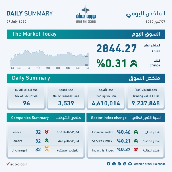 بورصة عمان تغلق تداولاتها على ارتفاع