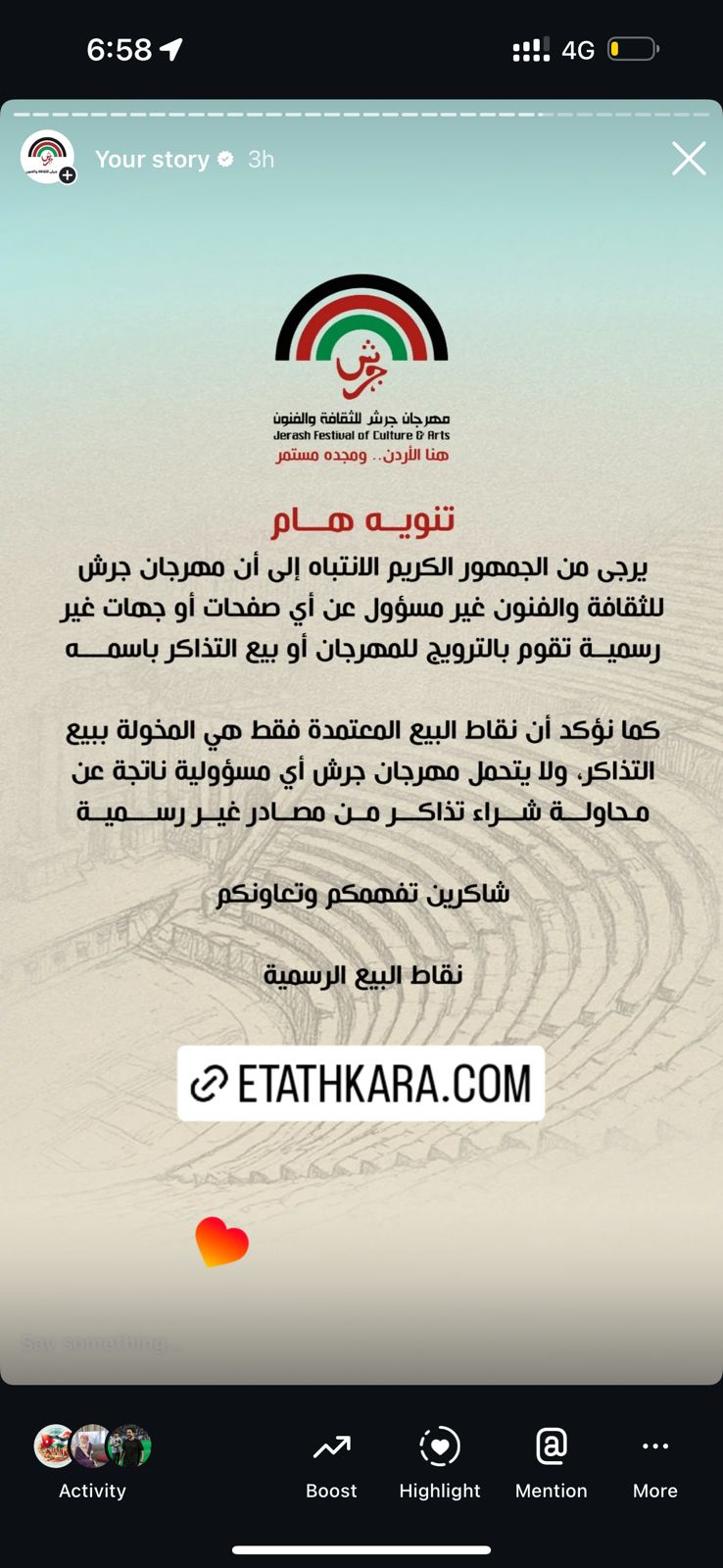 مهرجان جرش للثقافة والفنون يحذر من جهات غير رسمية لبيع التذاكر