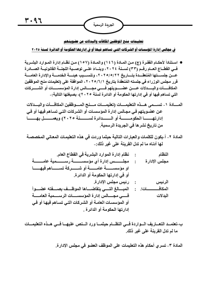 صدور تعليمات منح الموظفين المكآفات والبدلات عن عضويتهم بمجالس الإدارة