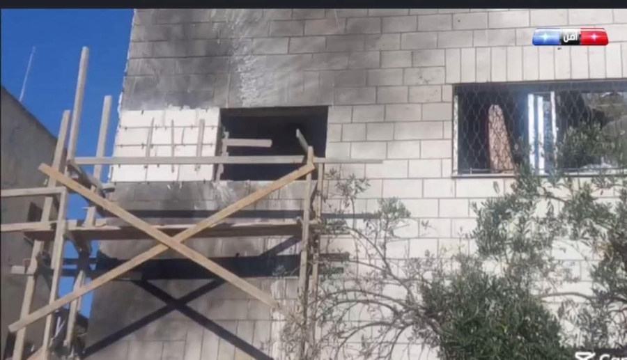 فرق الصيانة التابعة للقوات المسلحة تُجري صيانة لمنزل تضرر بسقوط مقذوف ناري في إربد