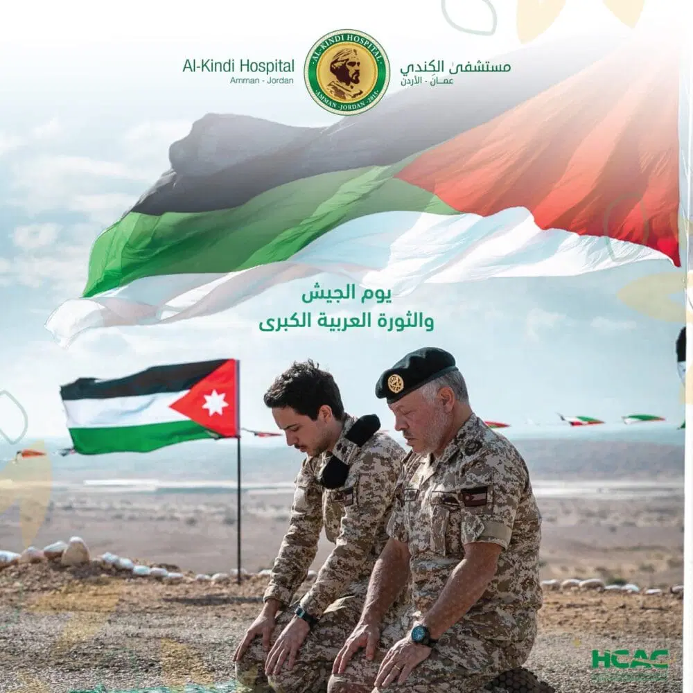 مستشفى الكندي يهنئ جلالة الملك بعيد الجلوس الملكي وذكرى الثورة العربية الكبرى ويوم الجيش