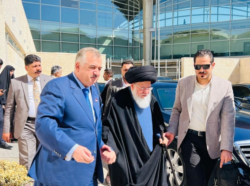 السفير العراقي يستقبل آية الله الفقيه السيد حسين إسماعيل الصدر في مطار الملكة علياء الدولي