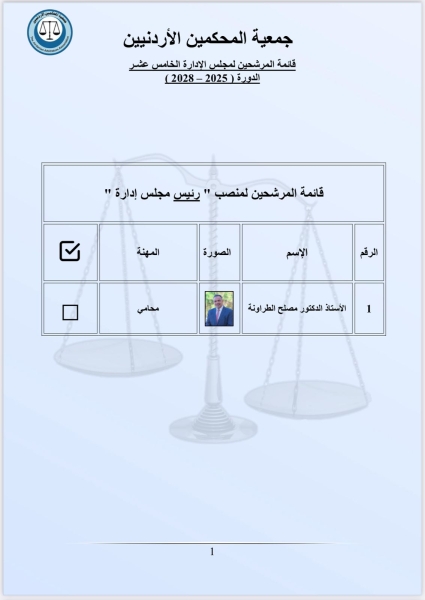 جمعية المحكمين الأردنيين تنتخب مجلس ادارتها الخامس عشر للدورة 2025/2028