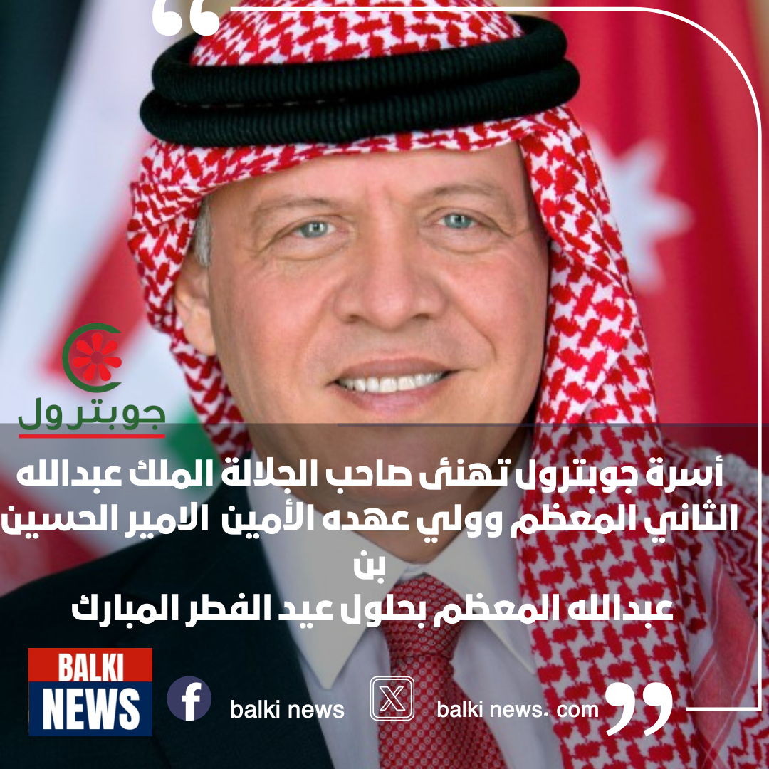شركة تسويق المنتجات البترولية الأردنية “جوبترول” تهنئ جلالة الملك وولي العهد بعيد الفطر المبارك