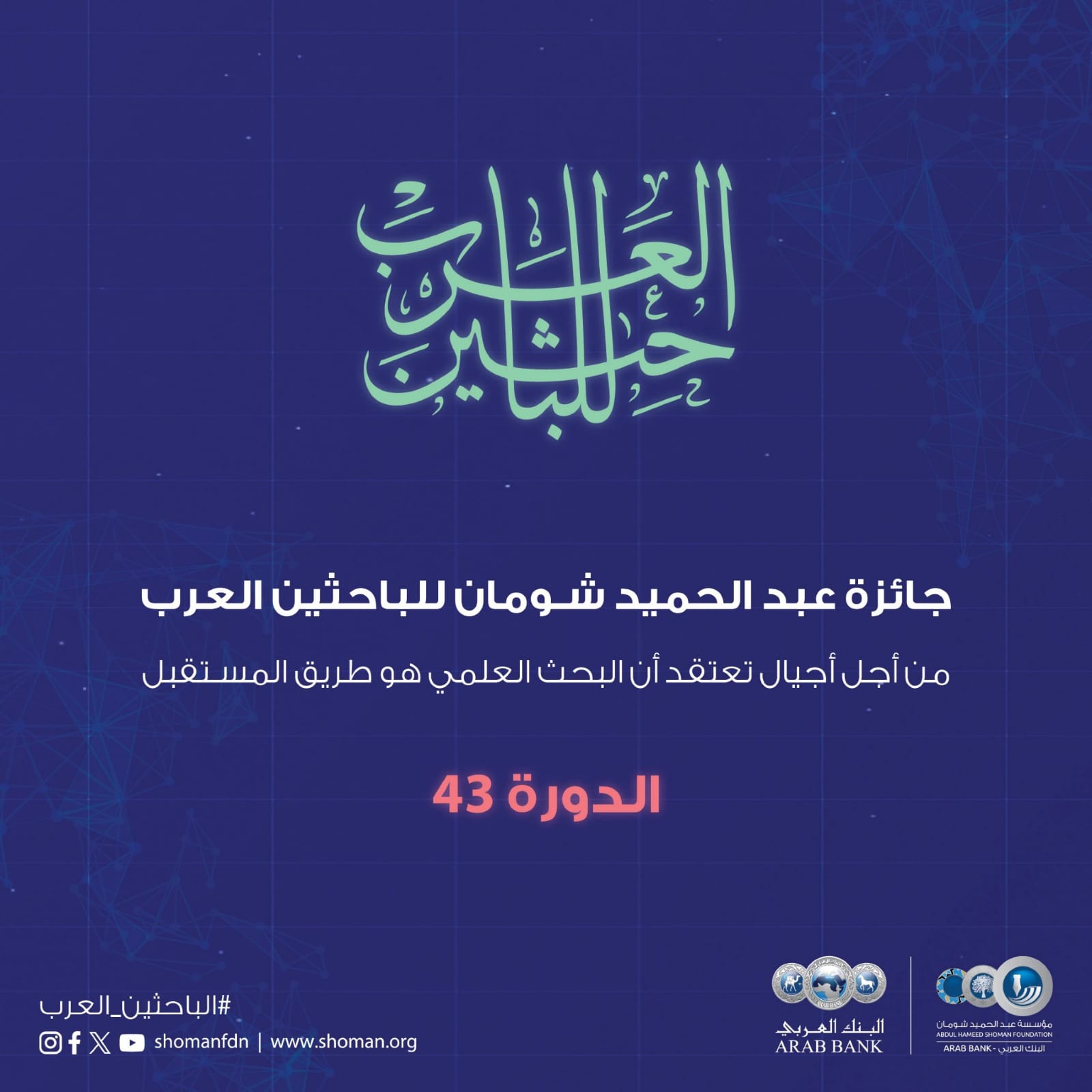 شومان" تواصل استقبال الطلبات لجائزتها للباحثين العرب للعام 2025