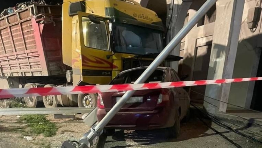 شاحنة تقتحم مجمع تجاري في إربد وتقطع الكهرباء عن المنطقة
