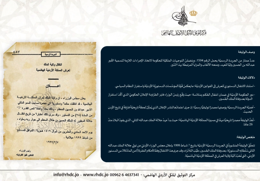 التوثيق الملكي يعرض وثيقة بمناسبة تسلم جلالة الملك سلطاته الدستورية