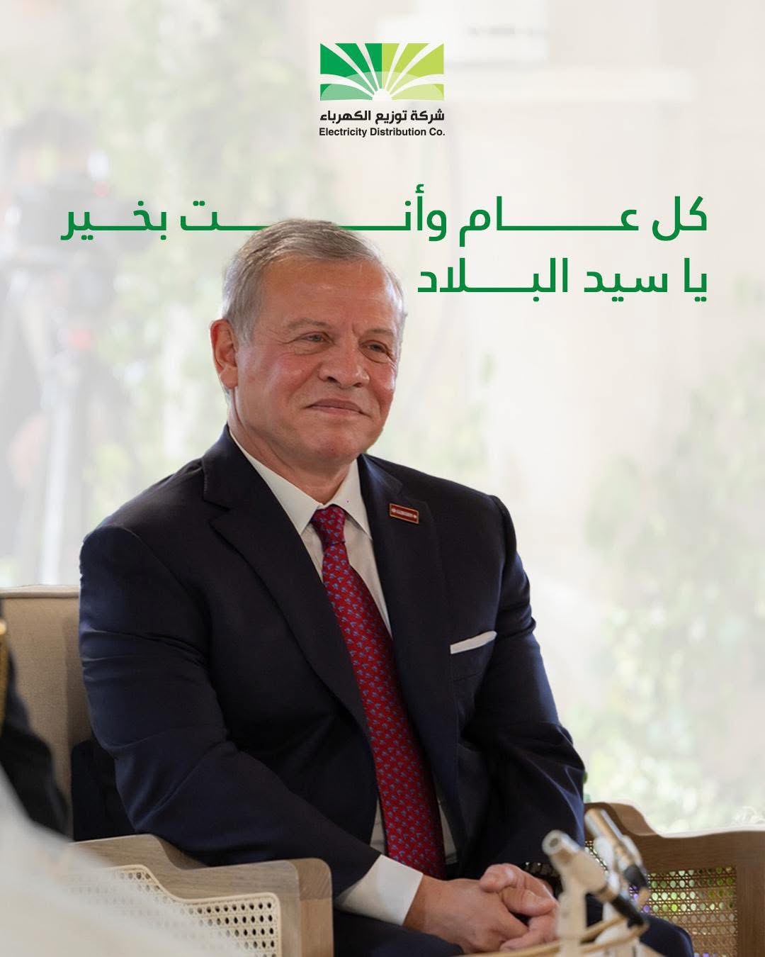 شركة توزيع الكهرباء تهنئ جلالة الملك بعيد ميلاده ال 63