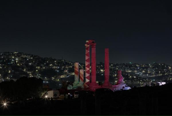 أمانة عمّان تضيء أعمدة جبل القلعة بعلم دولة قطر