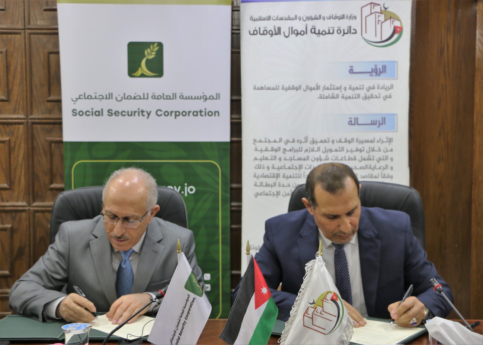 مذكرة تفاهم بين مؤسسة الضمان الاجتماعي ودائرة تنمية أموال الأوقاف