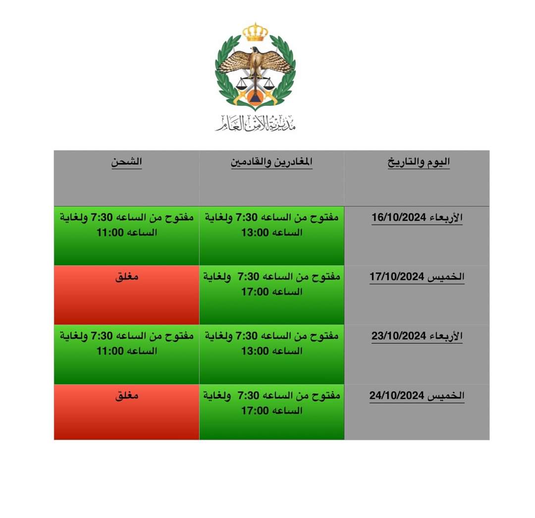 تعديل أوقات عمل جسر الملك حسين