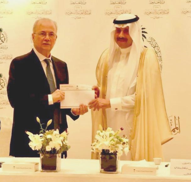 السفير السعودي يسلم رئيس الوزراء الفلسطيني دعما ماليا لمعالجة الوضع الإنساني بغزة