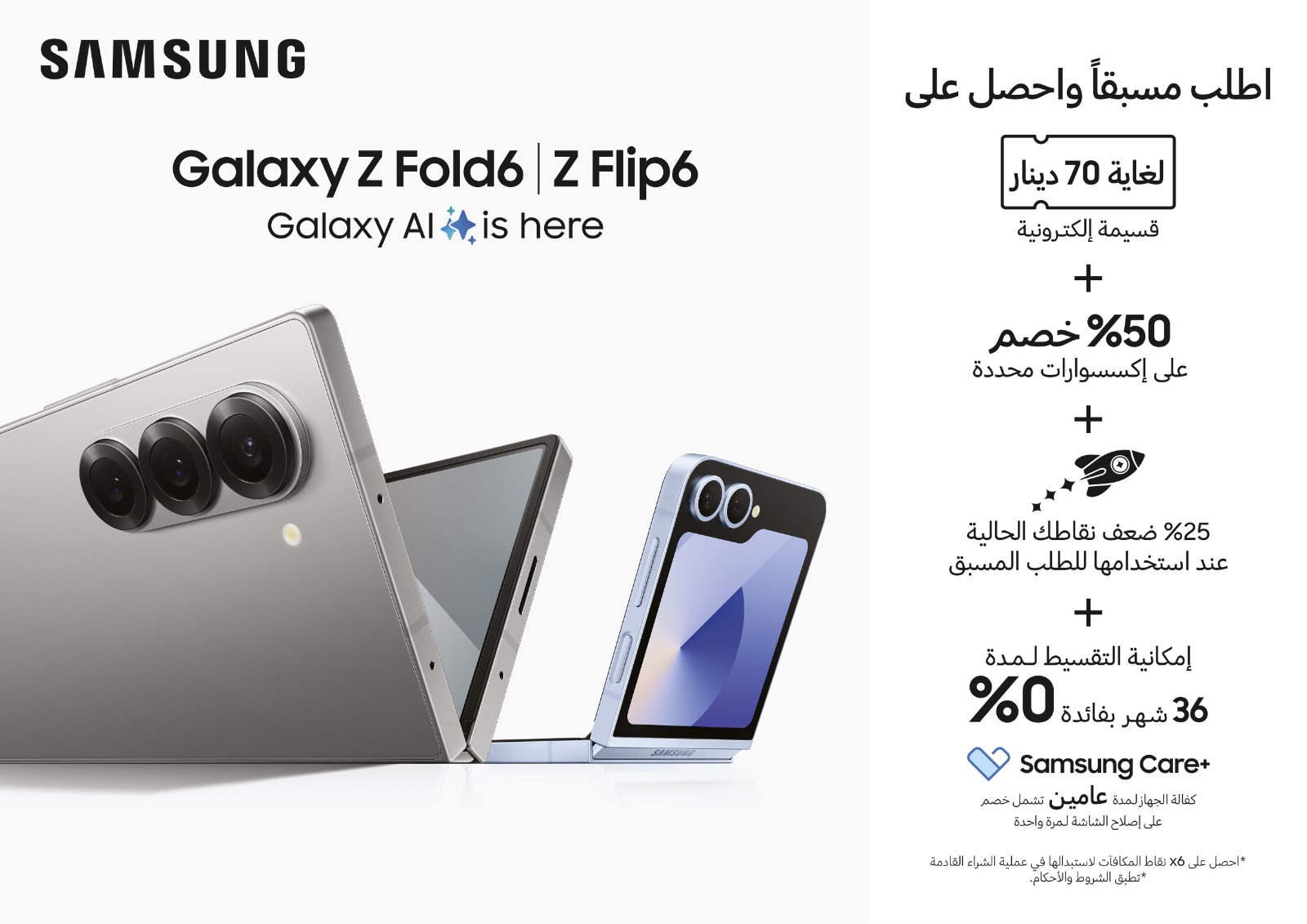 سامسونج إلكترونيكس تطلق حملة الطلب المسبق على هواتف Galaxy Z القابلة للطّي من تشكيلة العام 2024 في الأردن مع مجموعة من الهدايا والخصومات على الملحقات للمشترين الأوائل