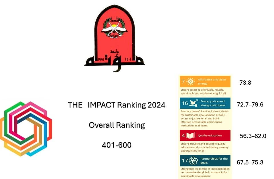 جامعة مؤتة تحقق تقدماً في تصنيف التايمز للتأثير 2024