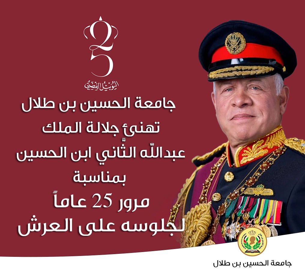 رئيس جامعة الحسين بن طلال يهنئ جلالة الملك بمناسبة عيد الجلوس الخامس والعشرين